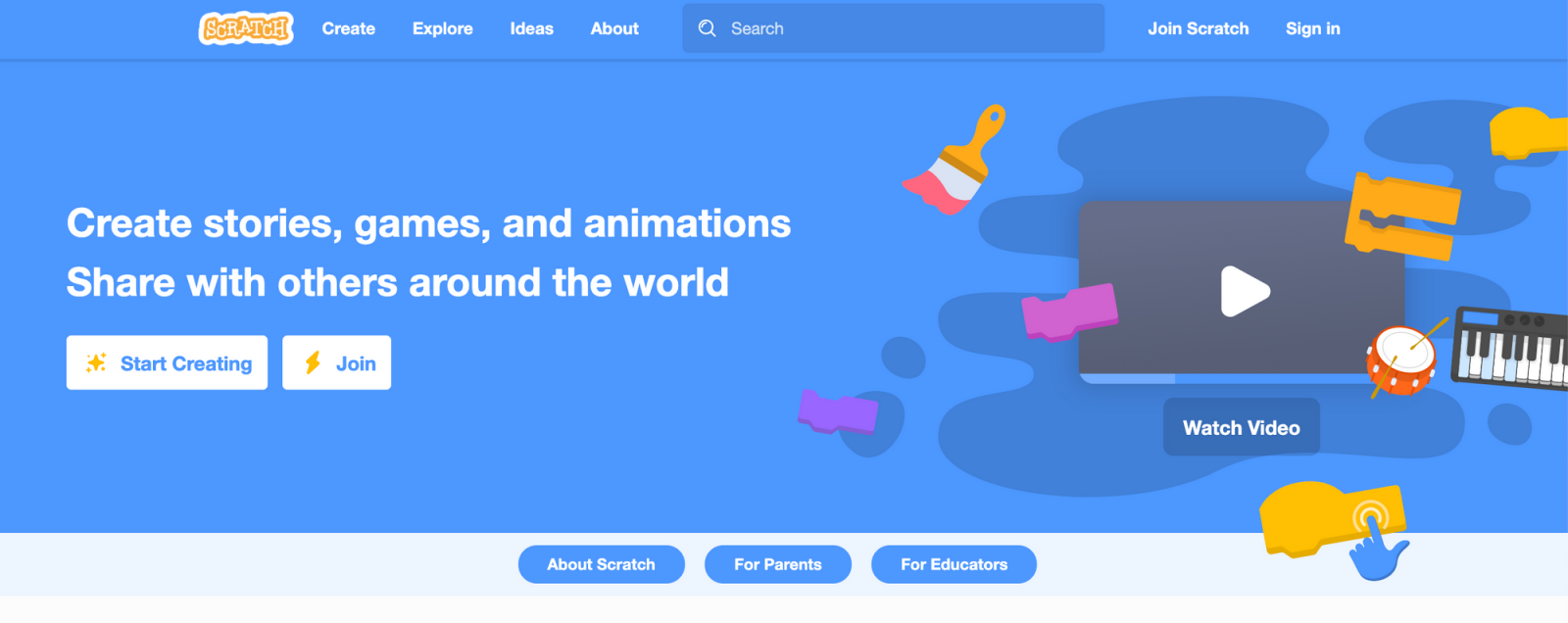 Puede crear estos proyectos en el editor en línea y compartir sus creaciones dentro de la comunidad. Este sitio está dirigido a niños de entre 5 y 18 años.