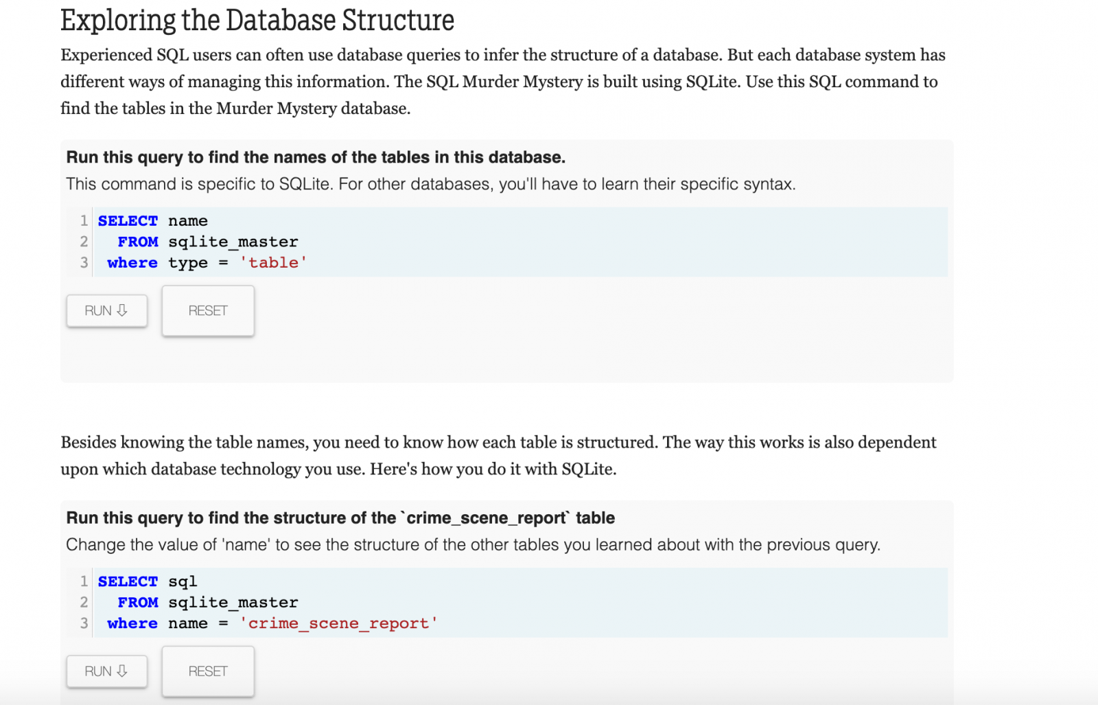 Si es nuevo en SQL, hay un recorrido detallado para principiantes. De lo contrario, si es un usuario experimentado de SQL, puede sumergirse directamente en el juego.