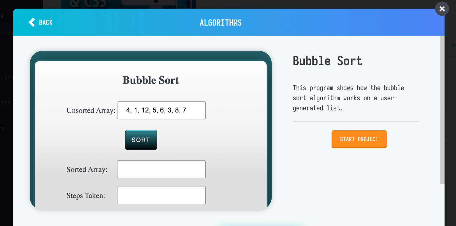 Tynker es un sitio donde se puede crear proyectos y jugar usando HTML, CSS, JavaScript, Python y Java. Tienen una lista extensa de proyectos, algoritmos y desafíos de estructura de datos.