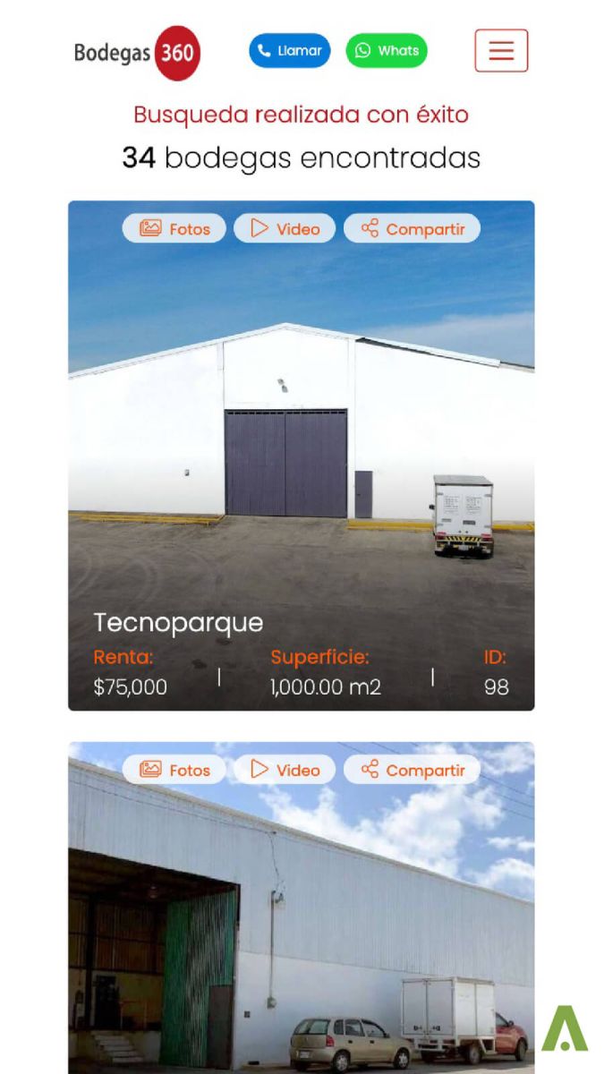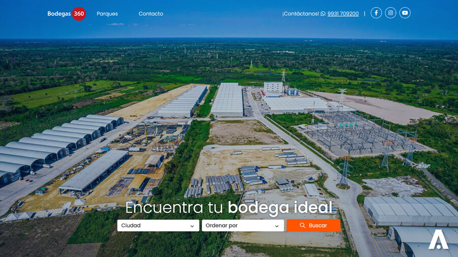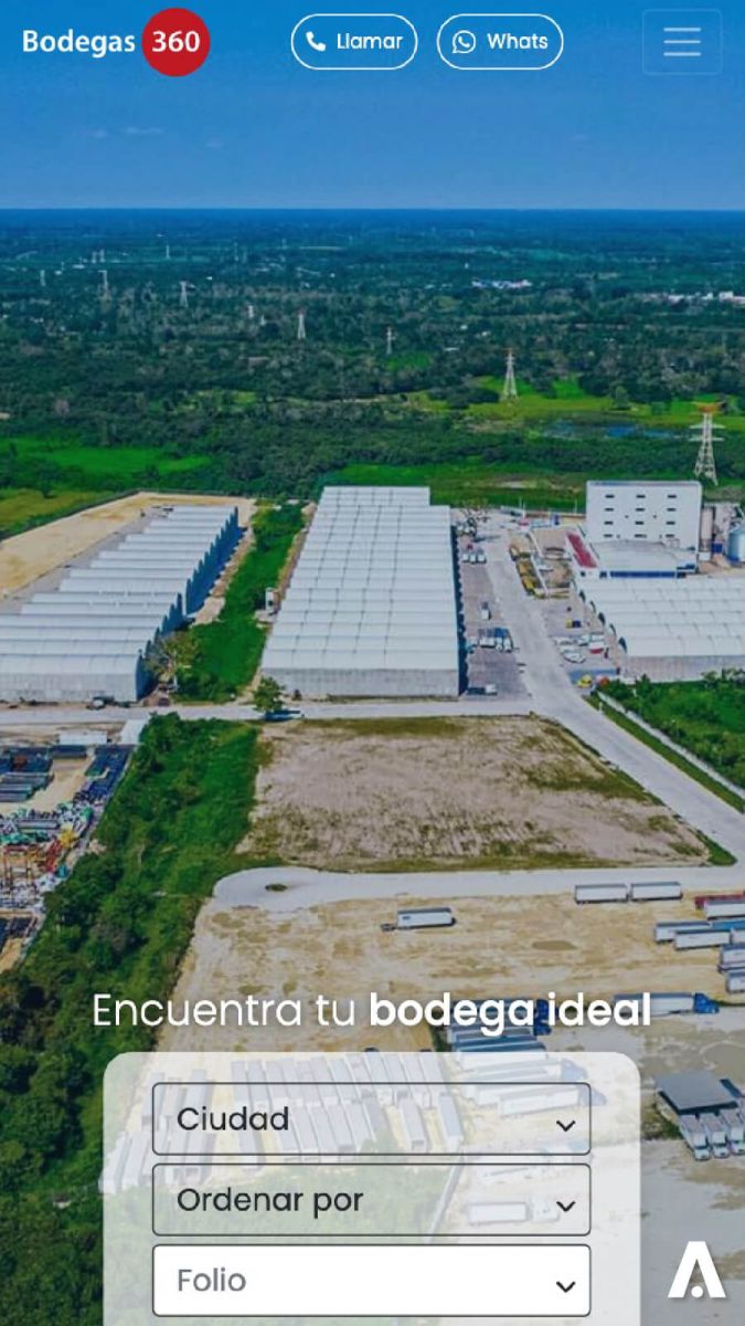 Al ingresar a la página web lo primero que encontramos es una imagen aérea que se ve sensacional y seguidamente un buscador simple pero preciso. Este nos ordenará los tipos de bodegas por ubicación.