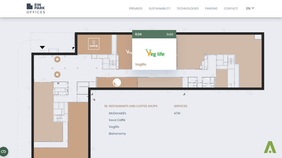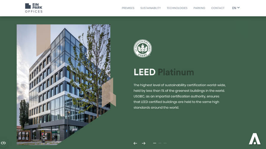Ein Park Offices tiene una web destacada donde innova en ciertas áreas específicas para ofrecer una experiencia diferente al cliente final.