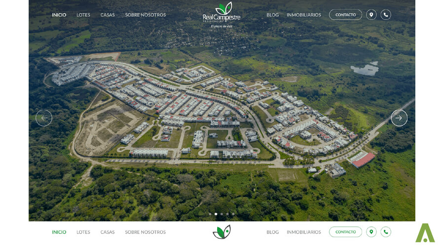 Entrando a la página web podemos ver una asombrosa imagen del fraccionamiento. De esta manera conecta de inmediato con el cliente.
