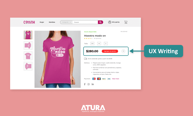 Los textos deben ser consistentes en todo momento, es decir, si un usuario ve un producto con el nombre A, y lo añade a su carrito, a la hora de realizar la compra ese producto A debe llevar el mismo nombre y no otro. Esto sirve para evitar malos entendidos con el usuario y darle la confianza que necesita.